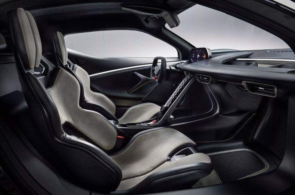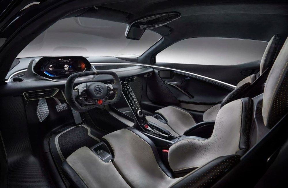 Dışı kadar iç dizaynı da dikkat çeken Evija'da, karbon fiber ve alkantara döşeme kullanılmış.