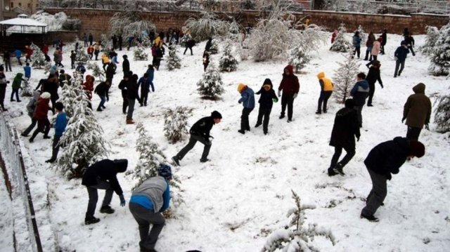Karın yağması ve okulların tatil edilmesiyle birlikte duruma en çok çocuklar sevindi. Kardan adam yapmaya başlayan çocuklar neşeli vakit geçiriyorlar. Yaptıkları kardan adamlara isimler bulan çocuklar karın ve tatilin keyfini çıkarıyor.