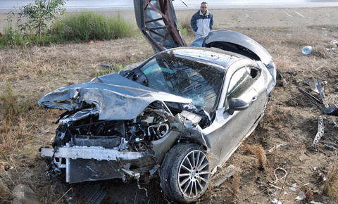 PD 777 plakalı aracıyla Girne’ye doğru seyreden 26 yaşındaki Erim Tandoğdu sağa meyilli virajda direksiyon hakimiyetini kaybetti. Yolun solundan çıkan araç yağmur drenaj çukuruna çarpıp havalandı. 35 metre havada savrulan araç bir otele ait 2 metre yüksekliğindeki reklam tabelasına vurdu. Yaralanan araç sürücüsü Erim Tandoğdu Lefkoşa Dr. Burhan Nalbantoğlu Devlet Hastanesi Cerrahi Servisi’nde müşahede altına alındı.