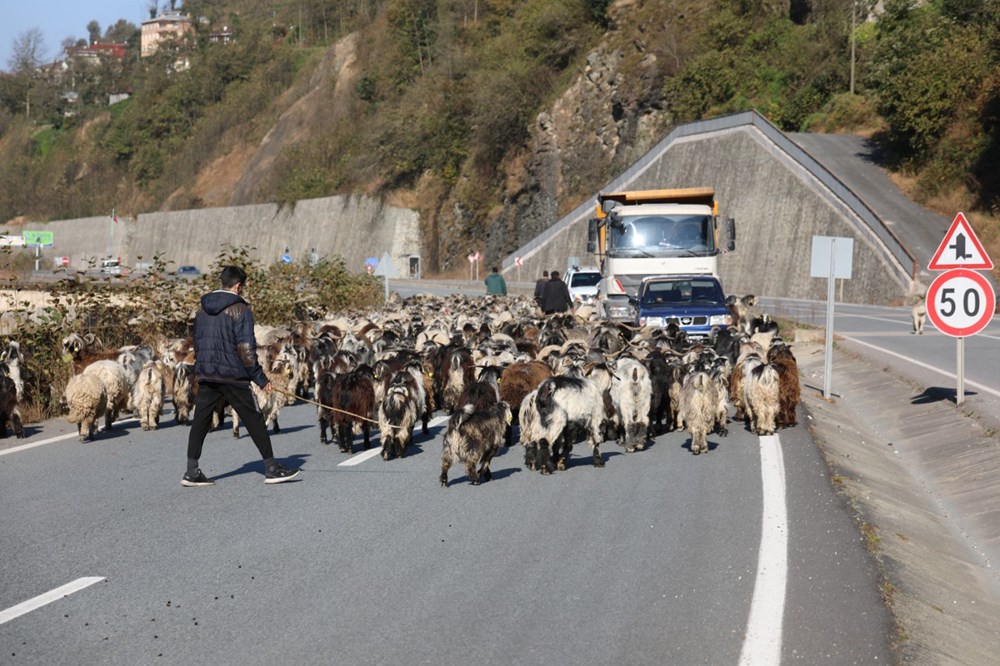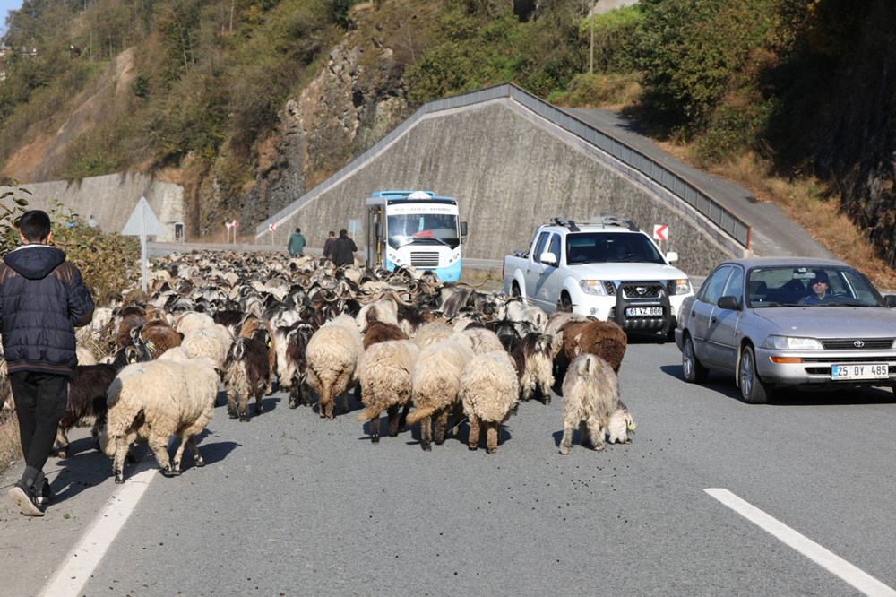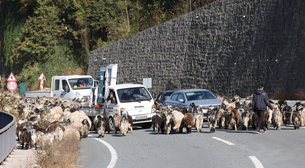 Karayolunda araçları ile ilerleyen sürücüler de, şaşkın bakışlar altında koyun sürüsünün arasından geçerek yoluna devam etti. Kimi sürücüler, araçlarının etrafını saran sürüyü cep telefonları ile görüntüledi. Çobanlar, 2 gün daha sürecek yolculukla Rize'nin Pehlivantaşı Mahallesi'ne ulaşacak.