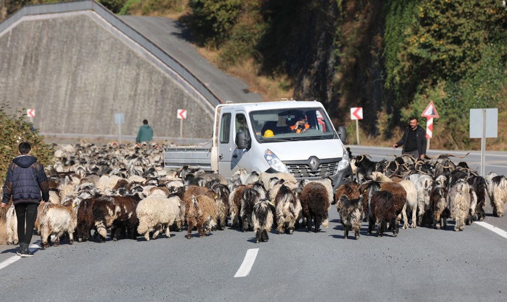 Havaların soğuması ile birlikte yaylalardan göç etmeye başlayan çobanlar yola koyuldu. Yaklaşık 600 küçükbaş ile karayolunda ilerleyen çobanlar, trafikte ilginç görüntüler oluşturdu.