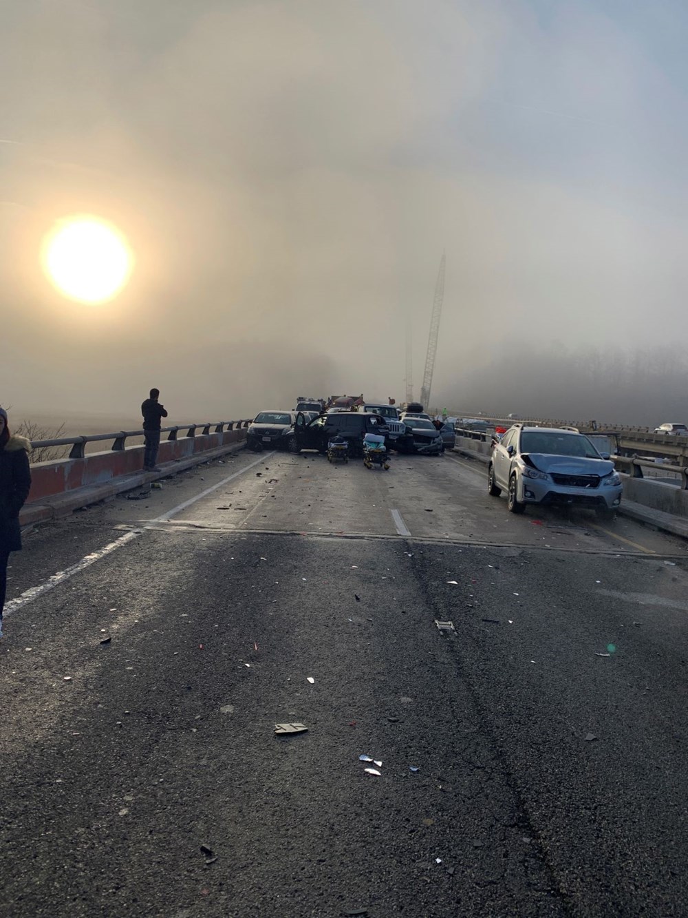 ABD’nin Virginia eyaletinin Wiliamsburg kentinde polisin ilk yaptığı araştırmaya göre yoğun sis ve buzlanma nedeniyle 69 aracın karıştığı bir zincirleme kaza meydana geldi.