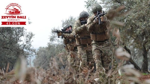 Gazete Habertürk'ten Nurcan İnal'ın haberine göre, Zeytin Dalı Harekâtı’nın 44’üncü gününde, Türk Silahlı Kuvvetleri (TSK) ve Özgür Suriye Ordusu (ÖSO) birlikleri büyük bir operasyon başlattığı terör bölgelerinde ilerleyişini sürdürdü.