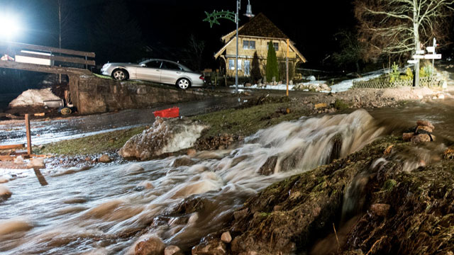 Rheinland-Pfalz eyaletinin Eifelkreis Bitburg-Prüm bölgesinde yağmur nedeniyle caddeleri ve evlerin bodrum katlarını su bastığı, bazı yerleşim birimlerinde telefon ağının bir süre çalışmadığı ve tren seferlerinin yapılamadığı ifade edildi.