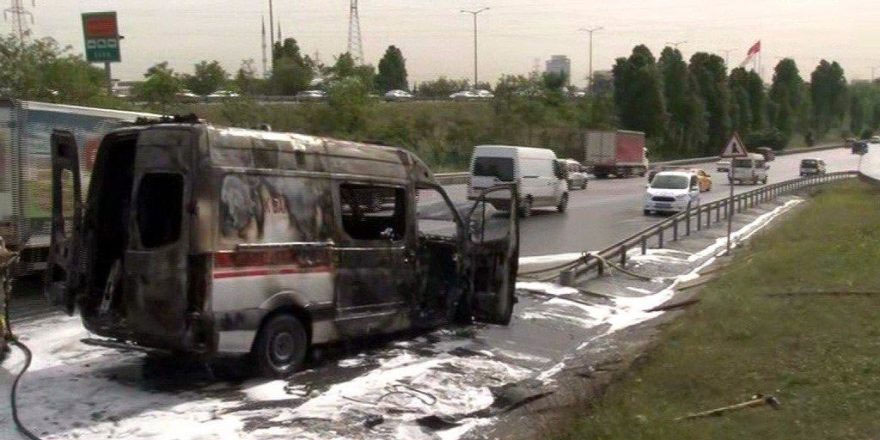 İstanbul'da İkitelli TEM yan yolda seyir halindeki ambulans aniden alev aldı.