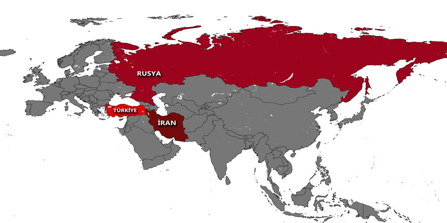 Görüleceği gibi Rusya ve İran gibi Türkiye de ABD tehdidi altındadır ve aynı tehdit karşısında olan bu üç ülke, Astana sürecinde de olduğu gibi, zaman içinde işbirliğini geliştirebilir ve hatta bu işbirliğini bir ittifaka dönüştürebilir. Böyle bir durumun ortaya çıkması halinde ittifakın kapsayabileceği coğrafi bölge haritada gösterilmiştir.