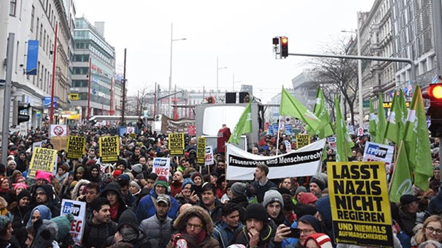 Avusturya’nın başkenti Viyana’da 60 binin üzerinde gösterici, aşırı sağcı hükümetin sığınmacı, yabancı karşıtı ve İslamofobik politikalarını protesto etti.