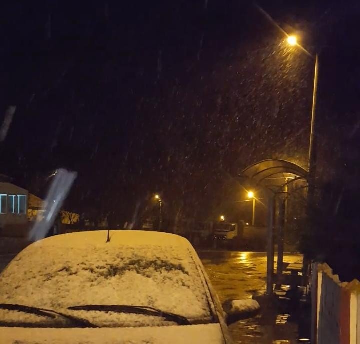 Edirne’nin Lalapaşa ilçesinde akşam saatlerinde başlayan sağanak yağış, havanın soğumasıyla birlikte yerini kar yağışına bıraktı.