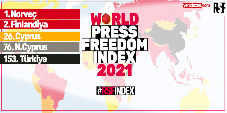 Uluslararası Sınır Tanımayan Gazeteciler örgütünün 2021 yılı Dünya Basın Özgürlüğü Endeksinde Kıbrıs 26’ıncı sırada yer alırken, kuzey Kıbrıs ise 76’ıncı sırada kendine yer buldu. Türkiye bir sıra yükselse de özgürlük endeksinde yine çok gerilerde kaldı, 153'üncü oldu.