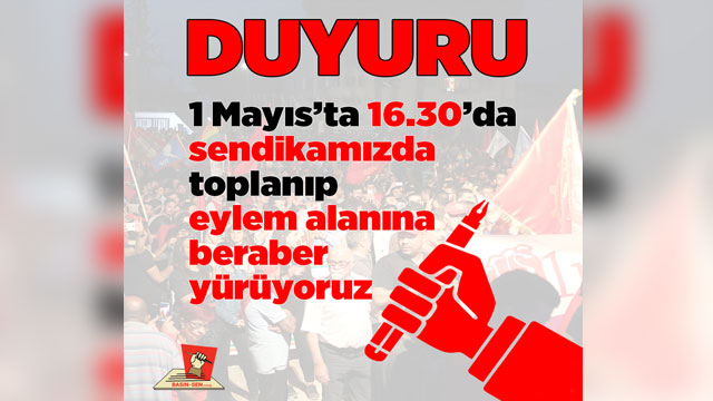 Basın-Sen olarak saat 16.30’da sendika lokalinde buluşup, eylem alanına yürüyeceklerini kaydeden Kişmir, “Başta üyelerimizi ve tüm ülke emekçilerini 1 Mayıs günü en güçlü olduğumuz yer olan sokağa çıkmaya ve ülkedeki emek sömürüsüne karşı tek ses olmaya çağırıyoruz” dedi.