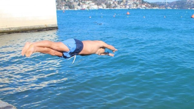 DHA'nın haberine göre, Bebek sahilinde denize giren Mustafa Yenen, "Yaşım 63. Biz denize girmeyi seviyoruz. Onun için yaz kış denize giriyoruz. Biz koşu yapıyoruz. Adalelerimiz yıpranıyor.Onun için denize girmemiz gerekiyor" dedi.