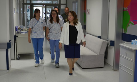 Sağlık Bakanı Filiz Besim, Lefkoşa Dr. Burhan Nalbantoğlu Hastanesi Çocuk Servisi ve Çocuk Onkoloji Servisi'ni ziyaret ederek, tedavi gören çocuklarla bir araya geldi.