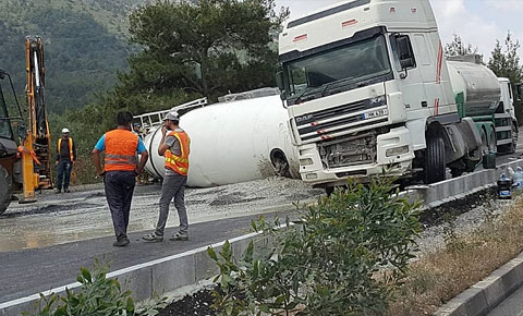 Girne-.Lefkoşa anayolunda meydana gelen trafik kazasında bir beton mikseri devrildi.