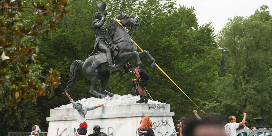 ABD'de bir grup gösterici, Lafayette Park'ın içinde bulunan, eski başkanlardan Andrew Jackson'ın heykelini yıkmaya çalıştı. Heykel yıkılmadan olaya müdahale sert bir şekilde eden polis, göstericileri parktan uzaklaştırdı.