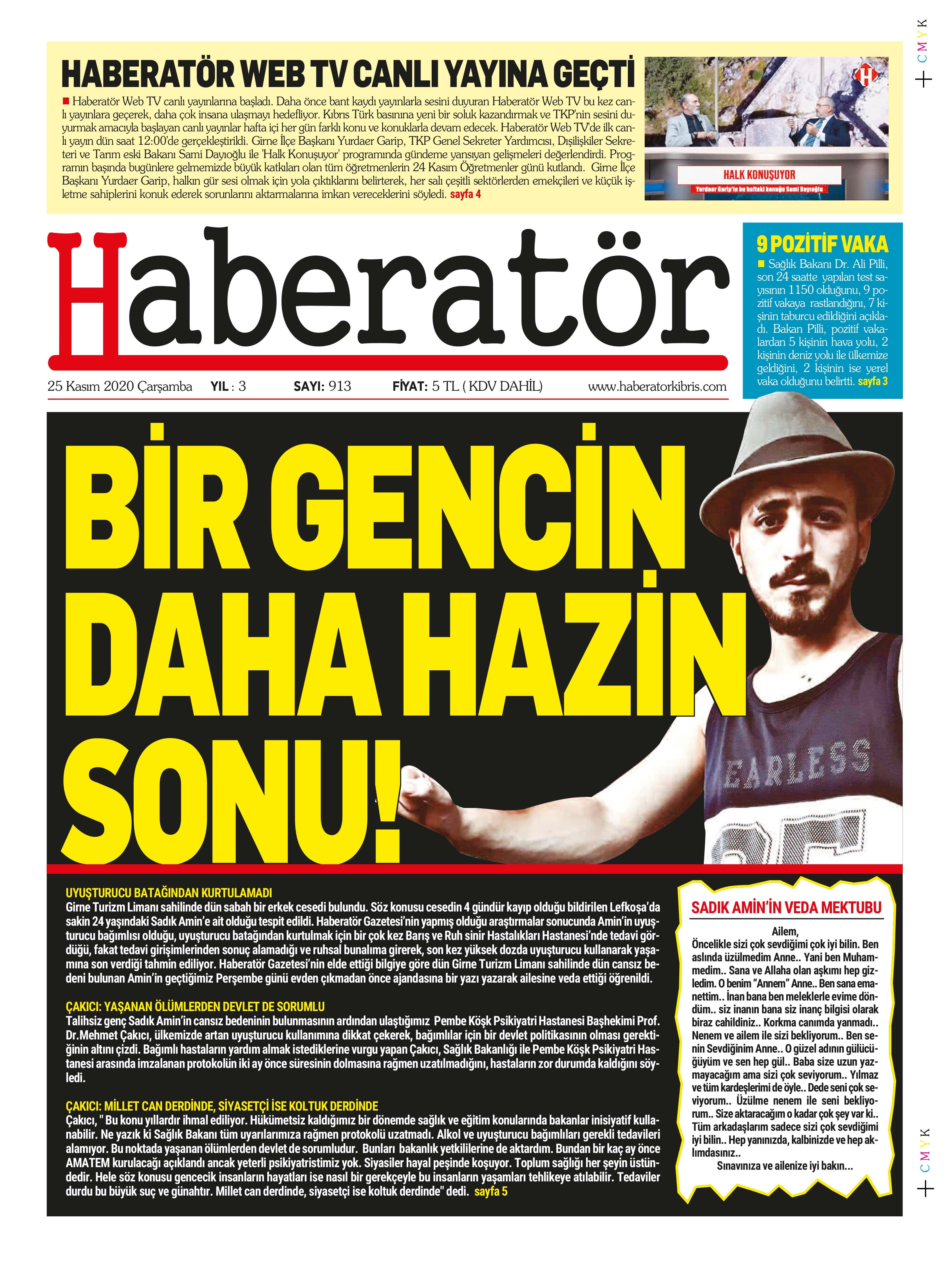 Haberatör Gazetesi’nin elde ettiği bilgiye göre dün Girne Turizm Limanı sahilinde dün cansız bedeni bulunan Amin’in geçtiğimiz Perşembe günü evden çıkmadan önce ajandasına bir yazı yazarak ailesine veda ettiği öğrenildi. Sadık Amin mektubunda şunları yazdı; “ Ailem, Öncelikle sizi çok sevdiğimi çok iyi bilin. Ben aslında üzülmedim Anne.. Yani ben Muhammedim.. Sana ve Allaha olan aşkımı hep gizledim. O benim “Annem” Anne.. Ben sana emanettim.. İnan bana ben meleklerle evime döndüm.. siz inanın bana siz inanç bilgisi olarak biraz cahildiniz.. Korkma canımda yanmadı.. Nenem ve ailem ile sizi bekliyorum.. Ben senin Sevdiğinim Anne.. O güzel adının gülücüğüyüm ve sen hep gül.. Baba size uzun yazmayacağım ama sizi çok seviyorum.. Yılmaz ve tüm kardeşlerimi de öyle.. Dede seni çok seviyorum.. Üzülme nenem ile seni bekliyorum.. Size aktaracağım o kadar çok şey var ki.. Tüm arkadaşlarım sadece sizi çok sevdiğimi iyi bilin.. Hep yanınızda, kalbinizde ve hep aklımdasınız.. Sınavınıza ve ailenize iyi bakın...”
