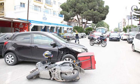 Lefkoşa Yenişehir’de meydana gelen kaza korkuttu. Paketçilik yapan bir sürücünün kullandığı motosiklet ile NY 891 plakalı araba ile çarpıştı. Kazada motosiklet sürücüsü hafif yaralanarak Dr. Burhan Nalbantoğlu Devlet Hastanesi’ne kaldırıldı. Kazada her iki araçta küçük çapta hasar meydana geldi. Trafik akışı ise kazadan dolayı aksadı.