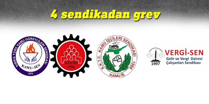 KTAMS, KAMU-SEN, KAMU-İŞ ve Vergi-Sen, bugün 08.00-16.15 saatleri arasında, Gazimağusa ve İskele ilçeleri Vergi Dairesi ve Motorlu Araçlar şubelerinde "Yok Oluşa ve Yoksullaşmaya Hayır" grevi yapacak.