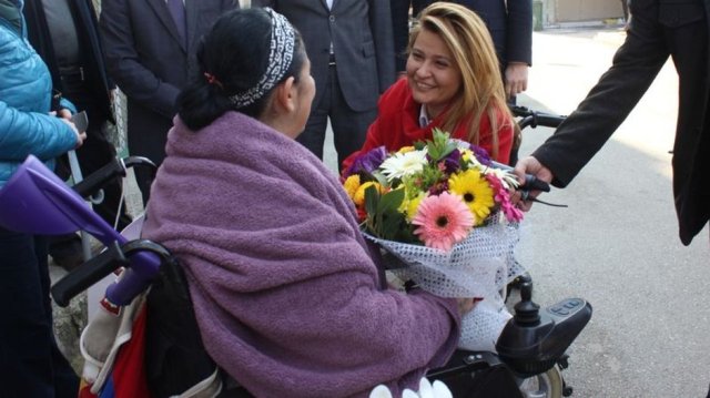 Bursa'da özel halk otobüsüne alınmayan engelli kadına çiçeklerle özür ziyaretinde bulunuldu.