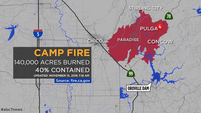 Butte Bölgesi Şerifi CoryHonea düzenlediği basın toplantısında, California'nın kuzey kısmını etkisi altına alan yangınlarda 7 kişinin daha cansız bedenine ulaşıldığını açıkladı. Böylece bölgedeki yangında yaşamını yitirenlerin sayısı 63'e çıktı.