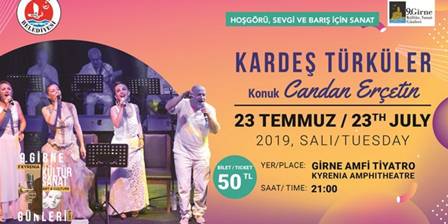 Girne Belediyesi’nin düzenlediği 9. Girne Kültür Sanat Günleri kapsamında yarın, Candan Erçetin ve Kardeş Türküler konser verecek