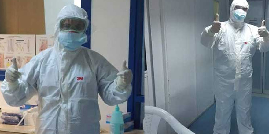 “Corona virüsünden enfekte olmuş hastamıza karantina alanında gönüllü olarak bakan cesur üye meslektaşlarımız.