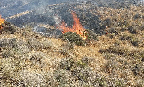 Gürpınar'da dün çıkan yangın sonucu yaklaşık 15 dönümlük arazi içerisinde bulunan makilik alan, 10 akasya ve 10 çam ağacı yanarak zarar gördü