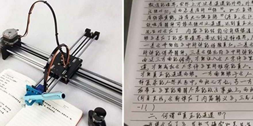 İnsan yazısını taklit ederek, hatasızca yazabilen robot, kız öğrencinin öğretmenlerinin bir haftalık Bahar Bayramı için verdiği ödevleri çok kısa sürede yazarak bitirdi.