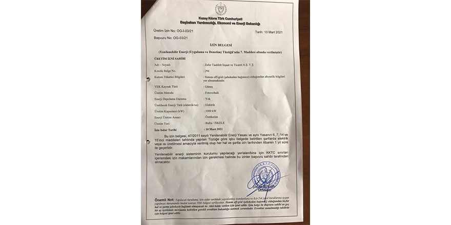 Verilen izin isteyen herkesin alabileceği bir izindir. Sisteme bağlı değildir üstelik Kıb-TEK’ten izin alma gerekmemektedir ve yöntem olarak hem YEK kurulunun hem de bakanlığın hedefidir. Çünkü bu yöntem sisteme ekstra yük getirmeden kurumların enerji sorunlarını çözmektedir.”