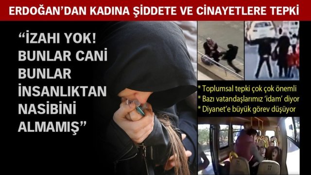 Cumhurbaşkanı Recep Tayyip Erdoğan'ın da tepkisi dile getirdiği son dönemde yaşanan kadına ve çocuğa yönelik şiddet olayları...