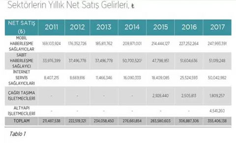 Bilgi Teknolojileri ve Haberleşme Kurumu’nun 2017 yılı raporuna göre elektronik haberleşme gelirlerinde 2016 yılına göre artış var.