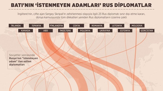 İngiltere'de eski Rus ajan SergeySkripal ve kızı Yulia'nın zehirlenmesinin arkasında Rusya olduğuna kesin gözüyle bakan ülkeler, tepkilerini Rus diplomatları sınır dışı ederek gösterdi.