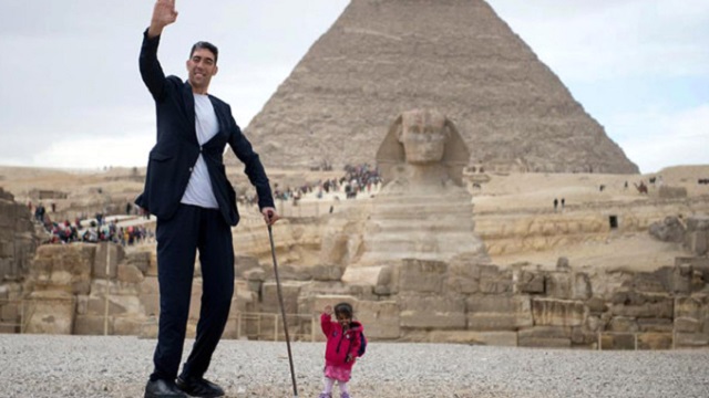 Mısır Turizmini Geliştirme Heyeti'nden yapılan açıklamada, dünyanın en uzun adamının Mısır’a ilk kez geldiği ve Mısır turizmine destek için Kahire’deki tarihi ve turistik bölgeleri ziyaret etmeye başladığı kaydedildi.