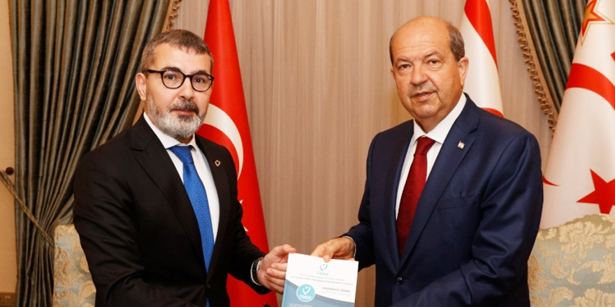 Cumhurbaşkanı Ersin Tatar, Türkiye İnsan Hakları ve Eşitlik Kurumu (TİHEK) Başkanı Prof. Dr. Muharrem Kılıç ve beraberindeki heyeti kabul etti.