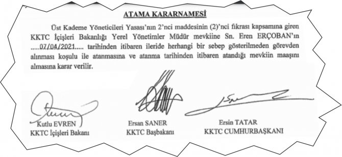 İçişleri Bakanı Kutlu Evren , İçişleri Bakanlığına bağlı “Yerel Yönetimler Müdürlüğü” görevine, emekliliğine 1 yıl kala kendi “dünürü” Eren Erçoban’ı Yerel Yönetim Müdürlüğü’ne atadı.