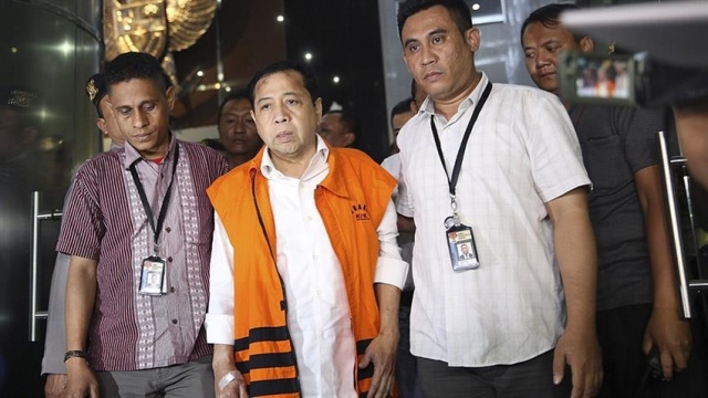Jakarta Globe gazetesinin haberine göre, Yolsuzluk Mücadele Kurumu (KPK), elektronik kimlik kartı (e-KTP) projesine sağlanan kamu fonunda adı 170 milyon dolarlık yolsuzluk iddialarına karışan Temsilciler Meclisi Başkanı Setya Novanto'yu sorgulamak üzere gözaltına aldı.