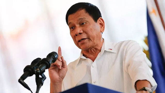 Duterte, Filipinler Donanmasının 120. kuruluş yıl dönümünde Manila'da yaptığı konuşmada, Çin'in Güney Çin Denizi'ndeki eylemlerine işaret ederek, "Bu dönemde bir savaşa girmeye gücüm yetmez. Kazanamayacağım ve tek sonucunun silahlı kuvvetlerimizin yıkımı olacağı bir savaşa giremem. Kabul edin etmeyin gerçek bu." ifadelerini kullandı.