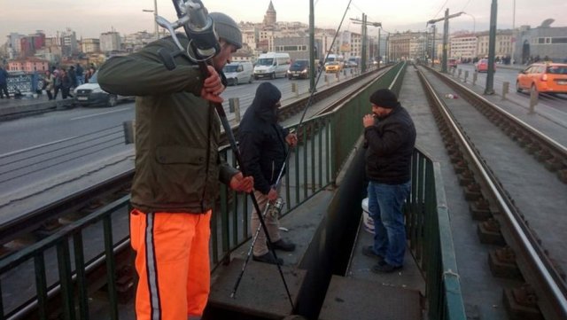 DHA'nın haberine göre, Karaköy ve Eminönü'nü birbirine bağlayan Galata Köprüsü üzerindeki tramvay rayları arasından denize saldıkları olta ile balık tutanlar dikkat çekti. Bu kişilerin köprü üzerinde yer bulamadıkları için mi yoksa başka bir sebepten mi orayı tercih ettikleri anlaşılamadı. Rayların arasından yapılan balık avında bolca kefal çıktığı görüldü. Tramvayın geçişi sırasında ise ilginç görüntüler ortaya çıktı.