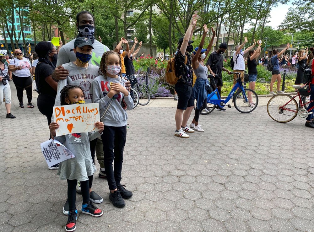 New York'ta Harlem'deki göstericiler, protestolara Floyd'a saygı amaçlı takım elbiselerle katıldı.