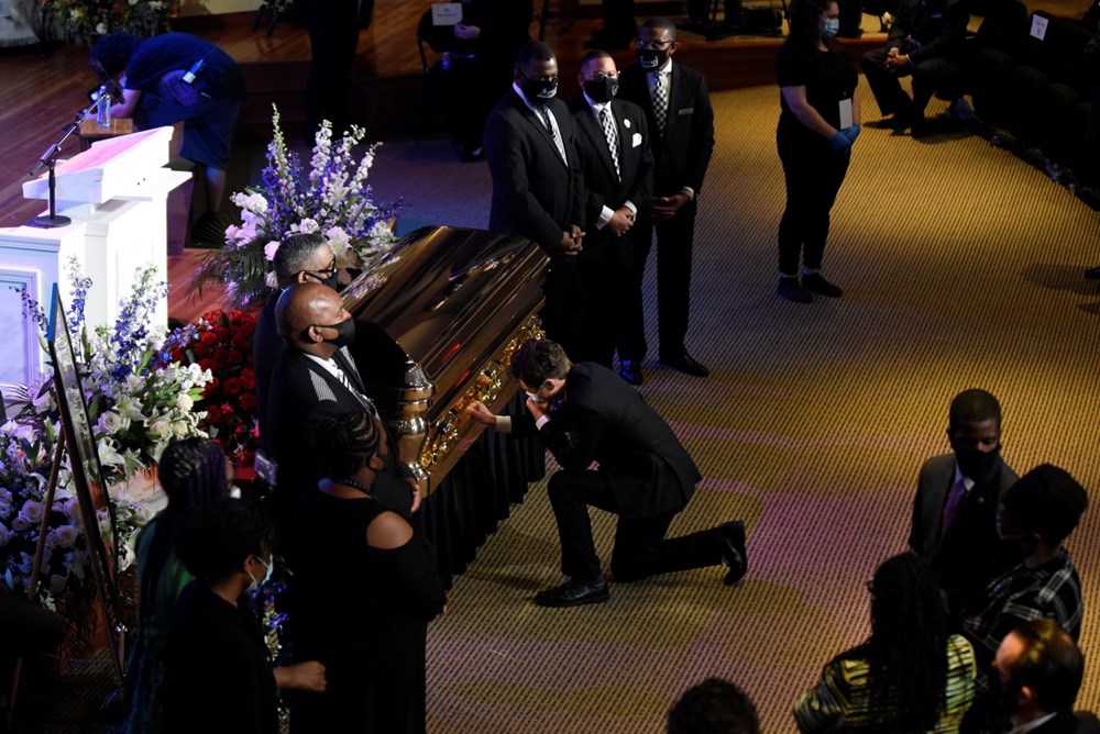 Minnesota'da polis şiddetiyle öldürülen siyahi Amerikalı George Floyd'un cenaze töreninde nefessiz kaldığı süreye atfen, sevenleri 8 dakika 46 saniye saygı duruşunda bulundu.