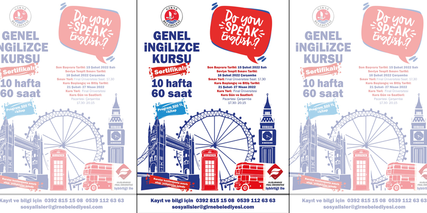 Girne Belediyesi ile Final Üniversitesi’nin iş birliğinde yapılacak İngilizce kursu için başvuru süreci başladı. Kurs için 15 Şubat’a kadar başvuru alınacak.