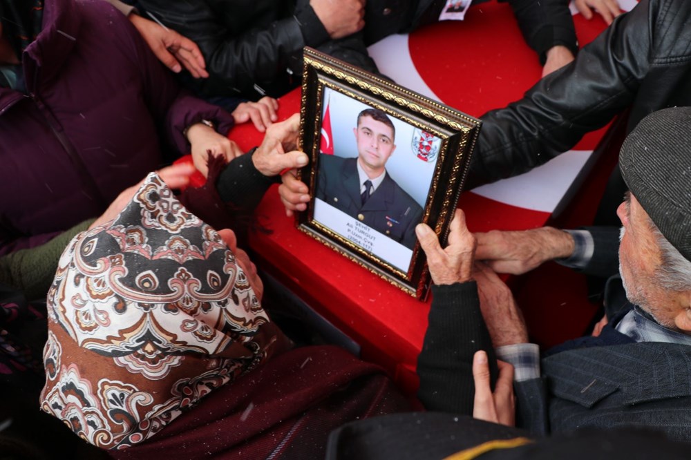 Şehidin annesi Kezban, babası Osman, kardeşi Pelin ve yakınları gözyaşı döktü. Tabutun başında bekleyen bir askerin gözyaşını şehit yakınının silmesi dikkati çekti.