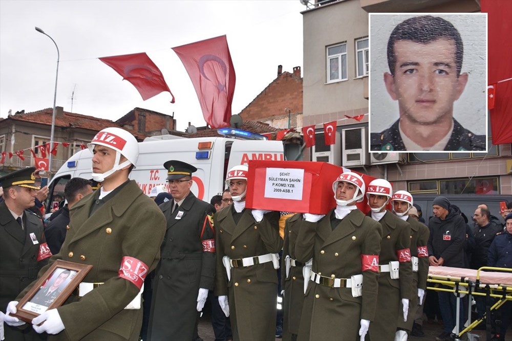 Piyade Yüzbaşı Süleyman Şahin, Afyonkarahisar'ın Dinar ilçesinde son yolculuğuna uğurlandı. Şehidin Türk bayrağına sarılı naaşı, Afyonkarahisar Devlet Hastanesi morgundan alınarak, ambulansla babaevine getirildi. Anne Arzu Şahin, "Sarı kuzum" diyerek ağlarken baba Mehmet şehidin eşi Nuray, kardeşleri Gökhan, Murat, İrem ve Havva Şahin ise tabuta sarılarak gözyaşı döktü.
