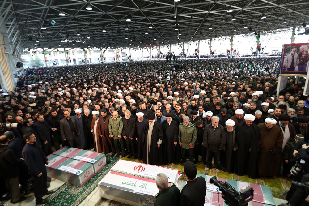 Bağdat'daki ABD operasyonunda öldürülen Kasım Süleymani için Tahran'da cenaze töreni gerçekleştirildi. Cenaze namazını Hamaney, gözyaşları içinde kıldırdı. Süleymani'nin cenazesi yarın memleketi Kirman'da defnedilecek.