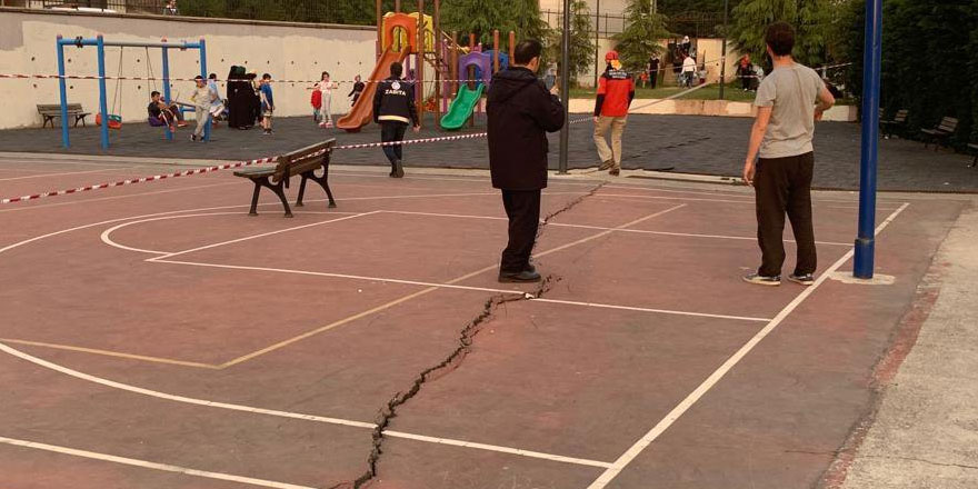 Bir ilkokulun yanında bulunan parkta derin çatlaklar oluştu