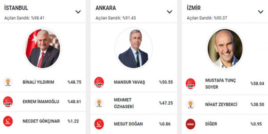 İstanbul'da binde 14 farkla Yıldırım, Ankara'da %3 farkla Yavaş önde