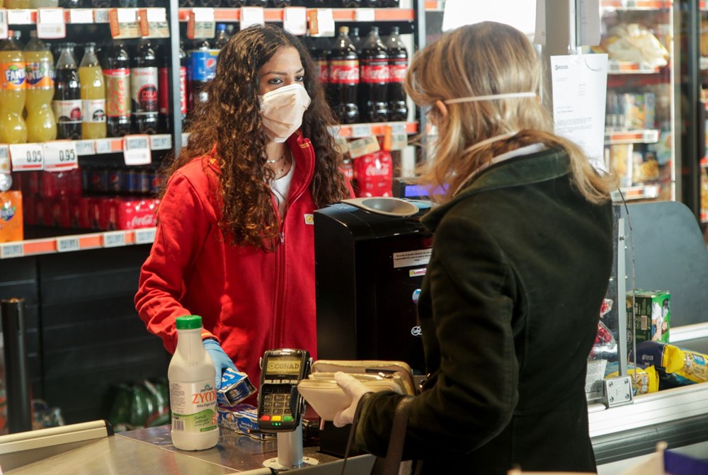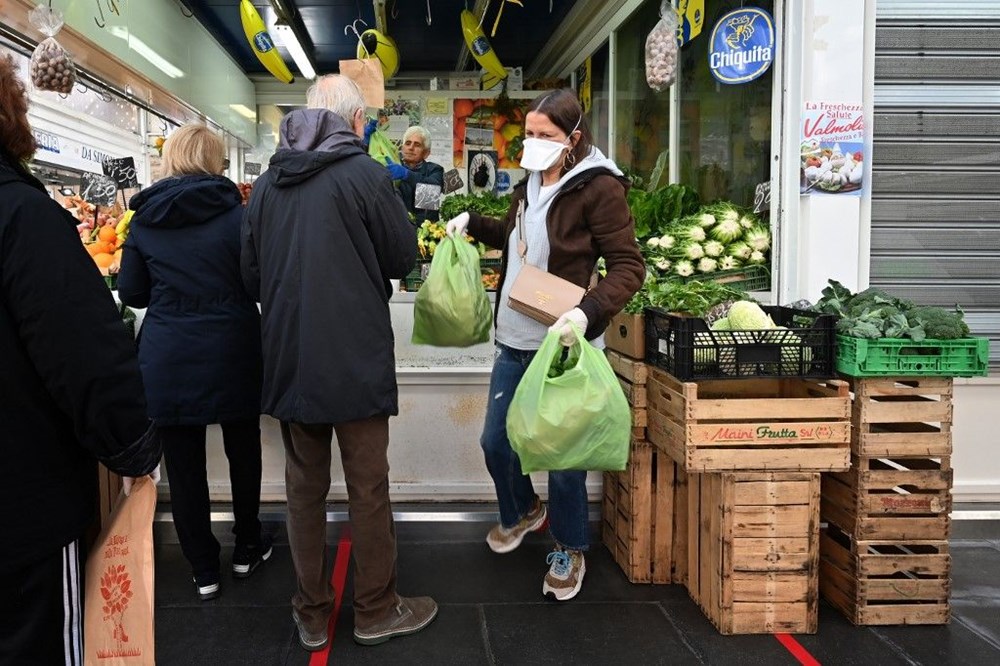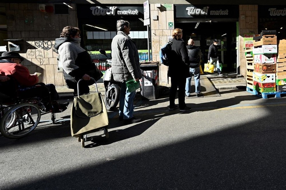 Dışarı çıkmanın sınırlandırılmasıyla endişelenene İtalyanlar, dün geceden u yana uzun kuruklarda bekleyerek yiyecek, içecek ve hijyen malzemeleri satın aldı.