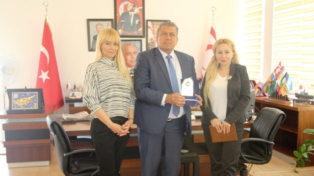 Kıbrıs Türk Kangoo Jumps Aerobik Spor Derneği Başkanı Tatiana Demiralp ve Nevsiye Emiroğlu, Gazimağusa Belediye Başkanı İsmail Arter’i ziyaret etti.