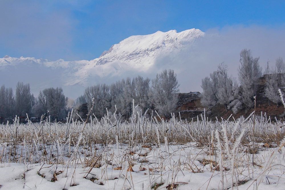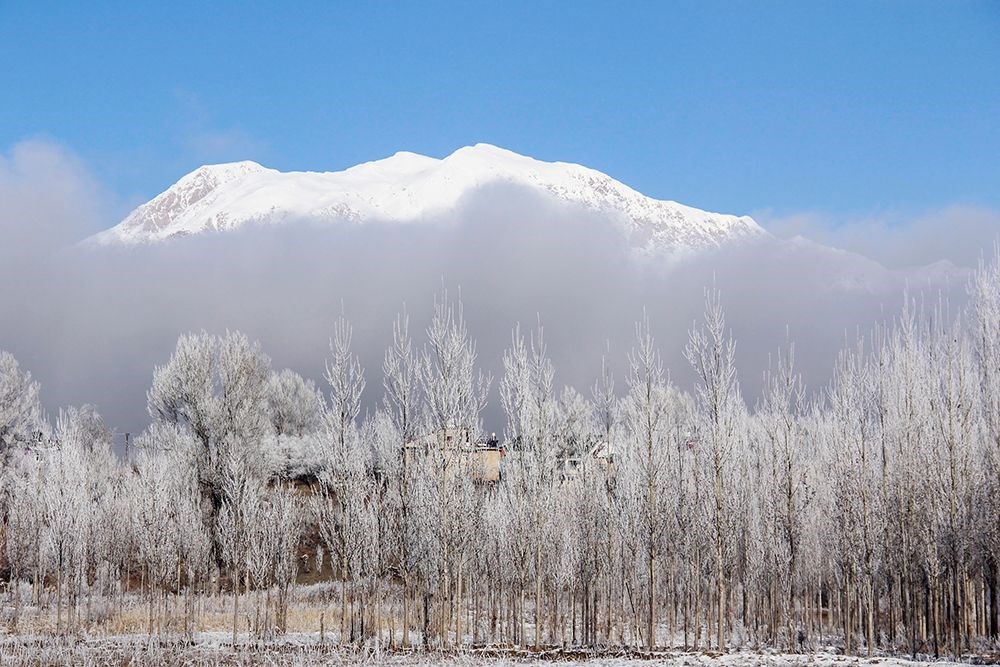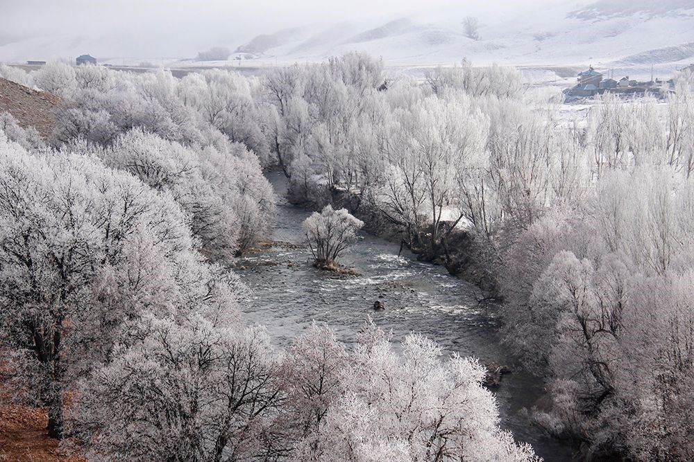 Ovacık ilçesinde etkili olan soğuk hava nedeniyle kırağı tutan ağaç ve bitkiler güzel görüntü oluşturdu.