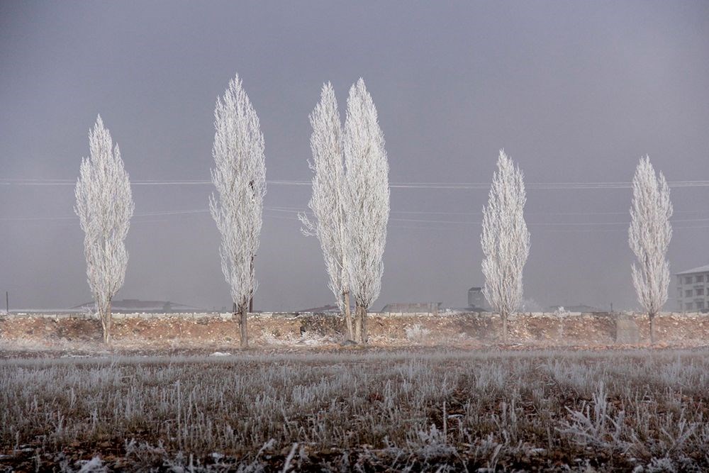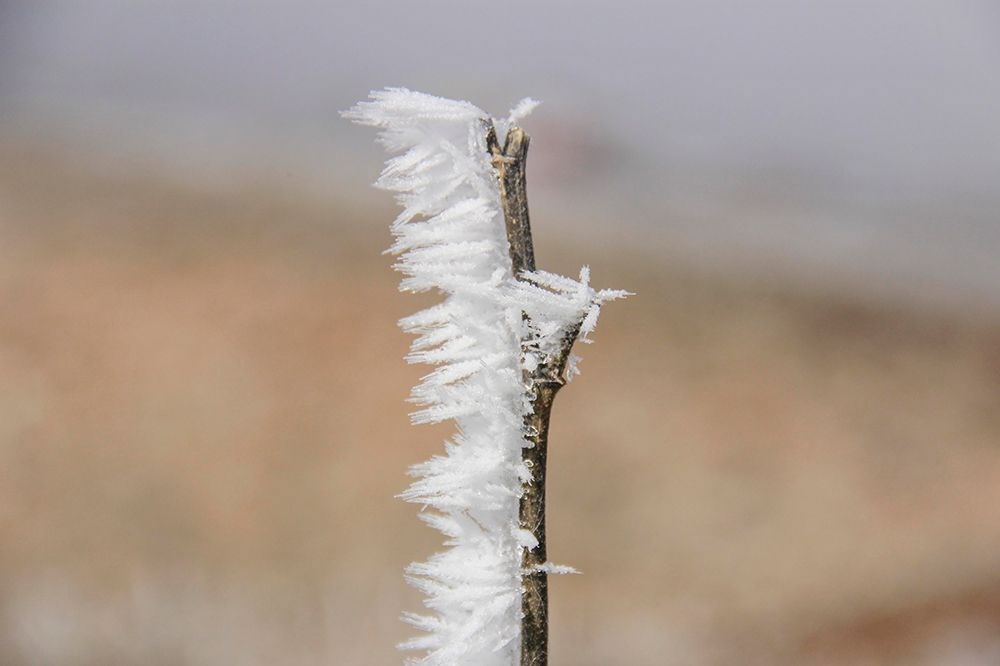 Yörede yaşayan fotoğraf sanatçıları da soğuk havaya aldırış etmeden yüzeyi kırağı tutan ağaç ve bitkileri fotoğrafladı.