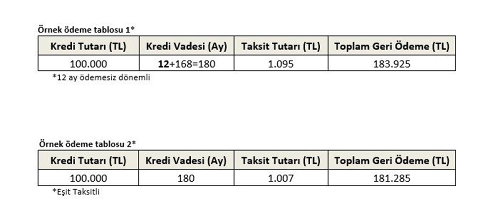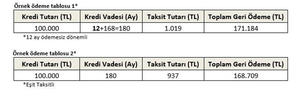 Söz konusu kredinin 1. ve 2. taksitleri ilgili firma ve banka tarafından ödenecek; müşterilerin taksit ödemesi 9 ay sonra başlayacak. Bu kapsamda müşterilerimizin kullanacağı kredinin faizi aylık yüzde 0,67 oranına denk geliyor.
